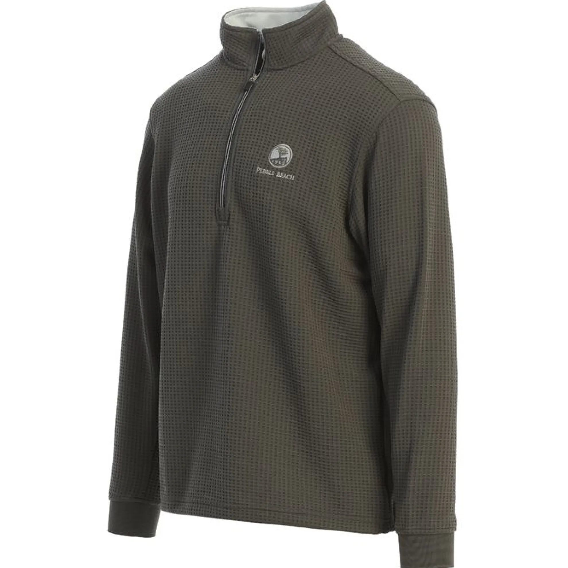 Pebble Beach Men’s Golf Optic 1/4 Zip By Straight DownThe Optic Pullover Is Made Using A Performance Waffle-Knight Polyester Fabric. It Is Designed To Be Breathable, So You Can Stay Dry Even As It Keeps You Warm. A Vertical Vent On The Upper Back Aids Airflow.Regular FitDrawcord At The BottomStand Collar100% Polyester